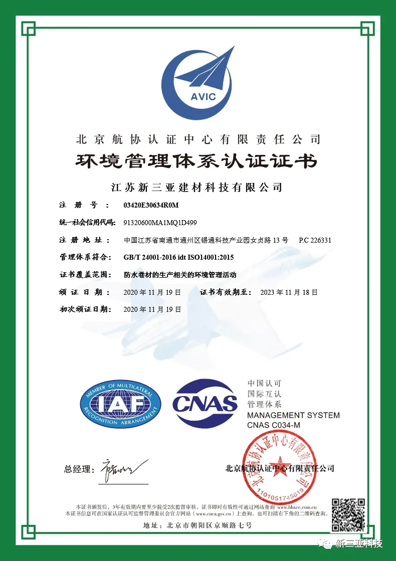 江蘇新三亞順利通過ISO體系認(rèn)證并取得證書